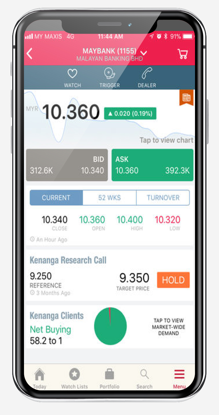 Sebaik sahaja akaun dagangan Kenanga anda dipasang dengan aplikasi INVESK, anda boleh mula melihat portfolio akaun dagangan anda dan menjejaki pelaburan anda.